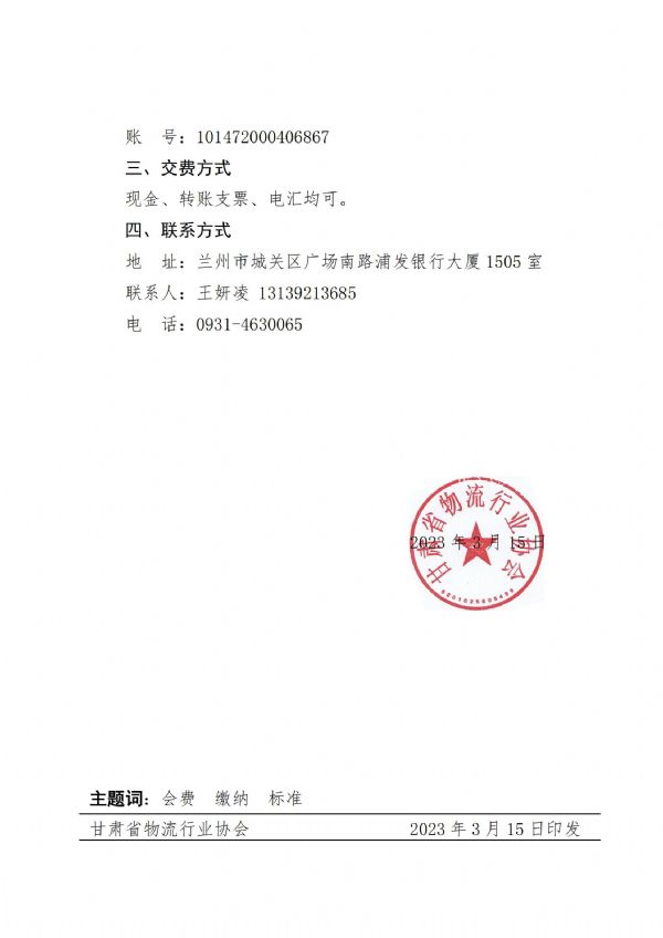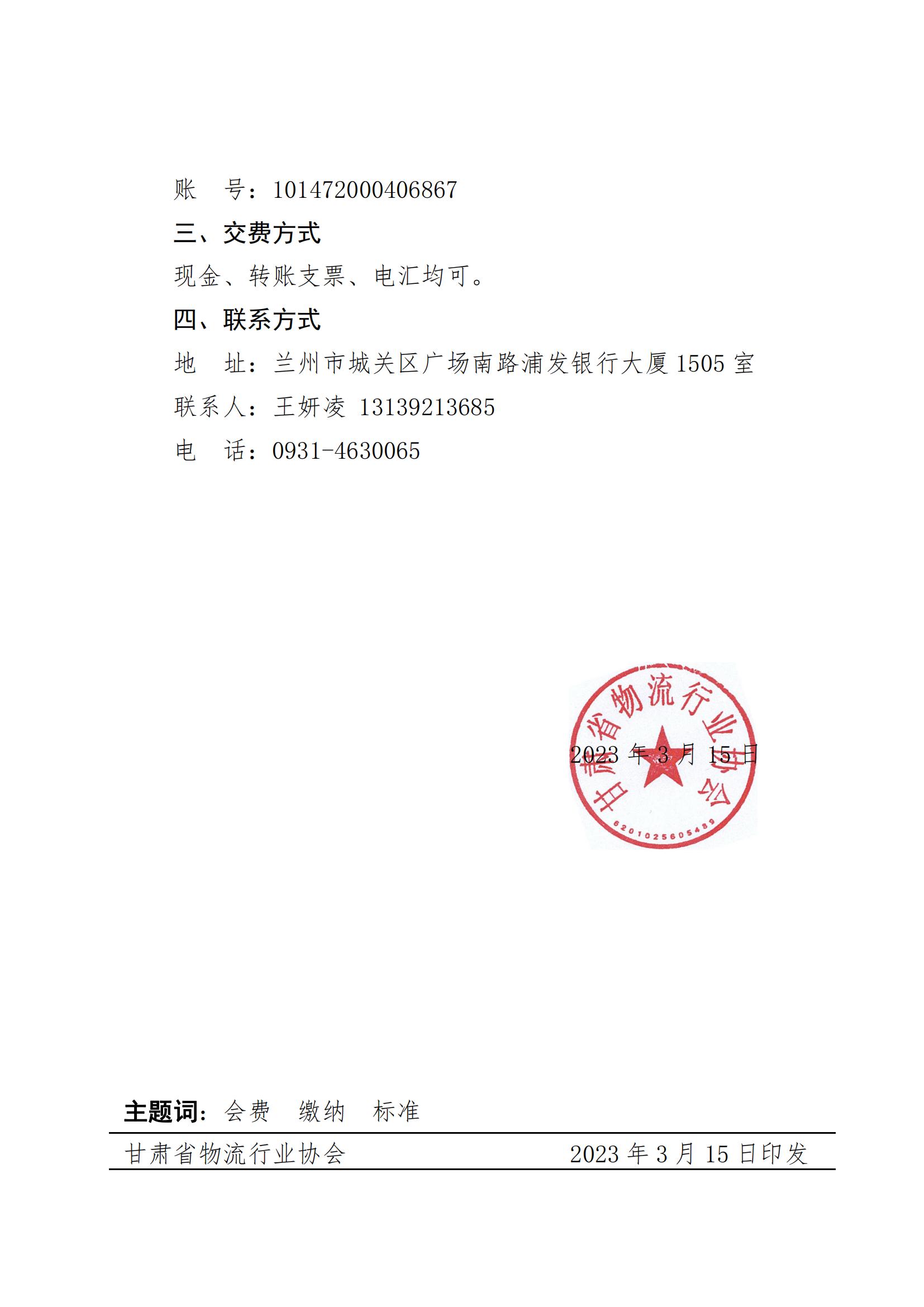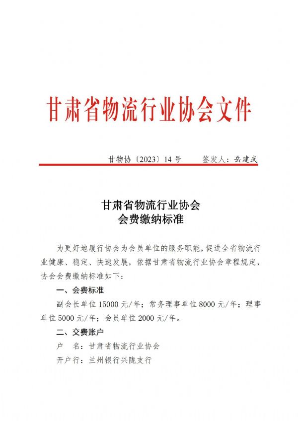 甘肅省物流行業協會會費繳納標準