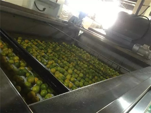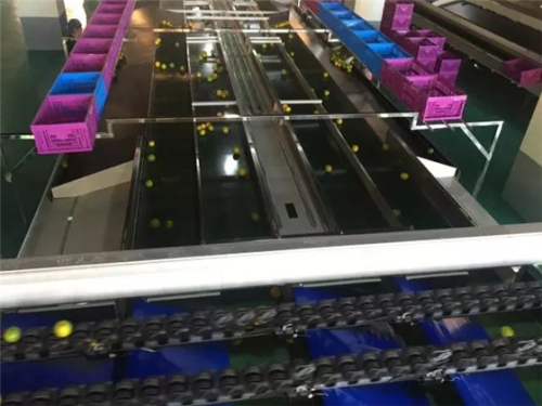 此次項(xiàng)目所用生產(chǎn)設(shè)備采購(gòu)自新西蘭的一家公司。冰糖橙首先經(jīng)過自動(dòng)清洗設(shè)備、自動(dòng)烘干設(shè)備進(jìn)行初步加工處理;隨后通過自動(dòng)光譜監(jiān)測(cè)系統(tǒng),橙子的甜度、糖度可以得自動(dòng)檢測(cè),從而篩選出甜度只在11~16之間的橙子,滿足每一個(gè)消費(fèi)者的要求。