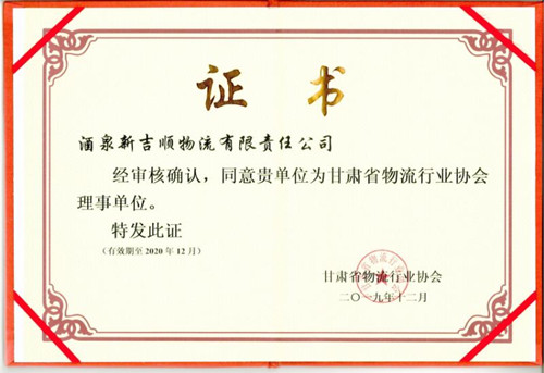 酒泉新吉順物流有限責任公司入會成為理事單位 發表時間:2019/12/18 14:39:02