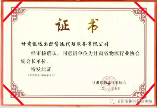 5月10日,經甘肅凱達國際貨運代理服務有限公司申報,甘肅省物流行業協會審核確認,同意該公司為協會副會長單位。