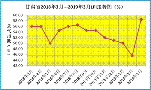2019年3月份甘肅省物流業景氣指數(LPI)為58.5%,比上月回升13個百分點,快遞業景氣指數(LPI)為66%,高于全省平均水平。各分項指數均有不同程度的回升。分析認為,3月份甘肅省物流景氣指數比上月回升,顯示出經濟運行中的物流需求大幅回升,處于擴張區間。