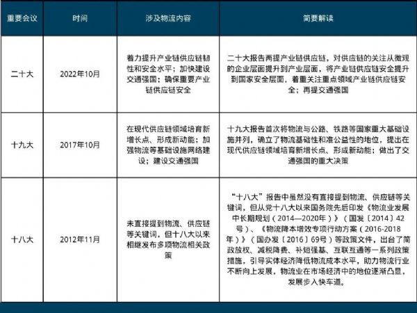 從“十八大”到“二十大”物流地位逐漸提升