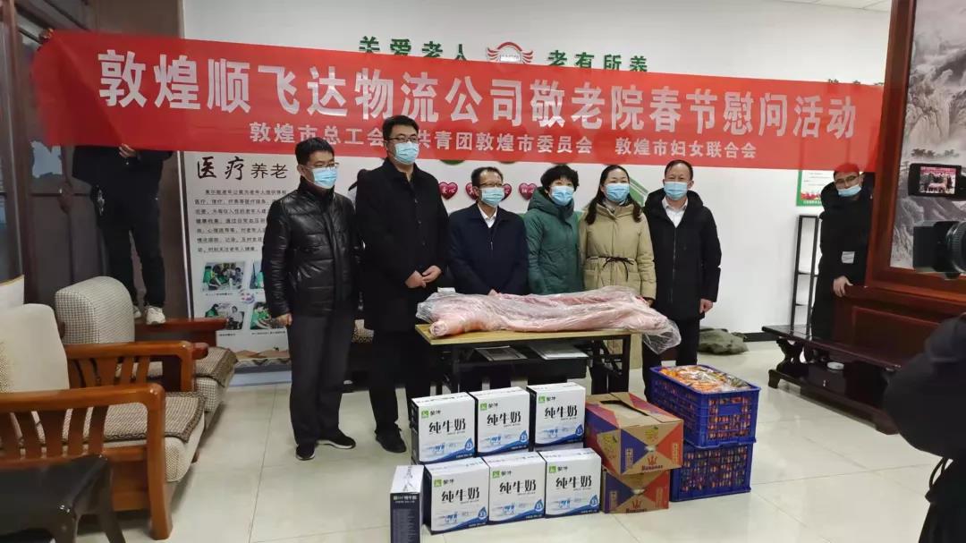 1月20日下午,協會副會長單位敦煌順飛達物流有限公司聯合敦煌市總工會、團市委、市婦聯等單位,走訪慰問敦煌市陽光老年公寓、社會福利院等養老服務機構,送去了牛奶、水果、肉類等慰問品和新春的祝福。 近年來,敦煌順飛達物流有限公司勇擔社會責任,對外,積極參與社會福利和公益活動,助老扶殘,奉獻愛心;對內,注重發揮黨組織和工會作用,充分調動企業員工積極性,維護行業從業人員合法權益,促進了企業和行業健康和諧發展。